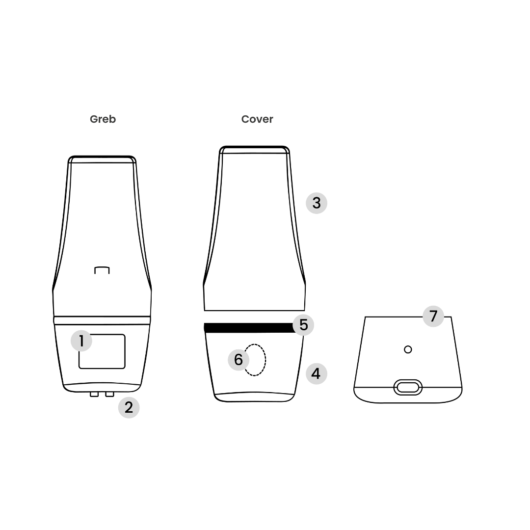 Wini består af et greb og et beskyttende cover, som gør rengøringen enkel. Delene omfatter: